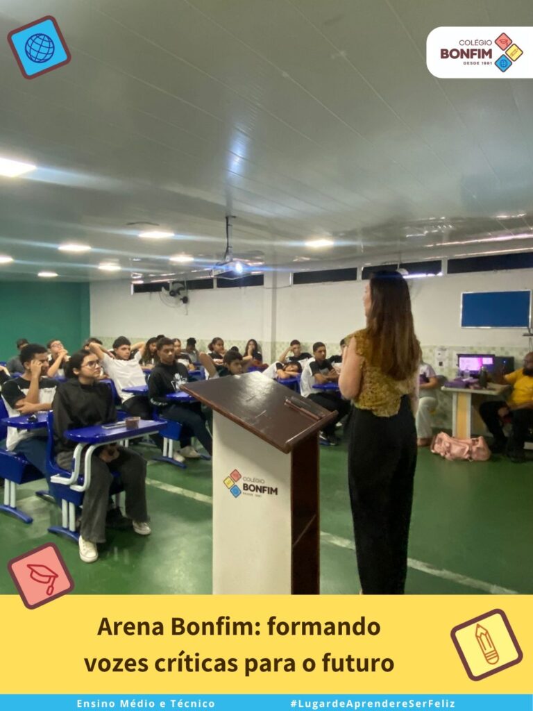 Para encerrar o Projeto Respeito às Mulheres: Educação que Protege Vidas, demos início ao Projeto Arena Bonfim, uma proposta voltada ao fortalecimento da argumentação, do repertório sociocultural e da construção de tese dos alunos do Ensino Médio, com foco em possíveis temáticas de redação do ENEM e de outros concursos.