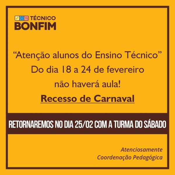 CALENDÁRIO DE CARNAVAL DO BONFIM