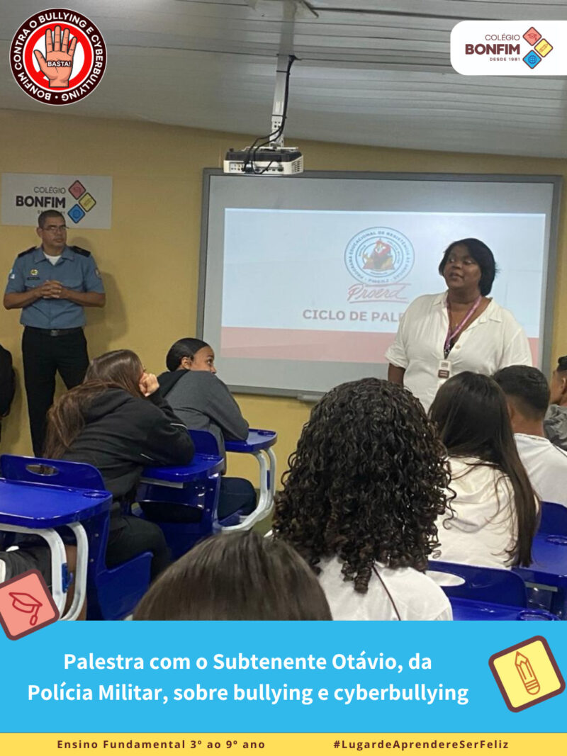 Hoje (13/04), tivemos a honra de receber o Subtenente Otávio, da Polícia Militar, que conduziu palestras com nossos alunos sobre bullying e cyberbullying — temas cada vez mais presentes e que exigem atenção e diálogo.